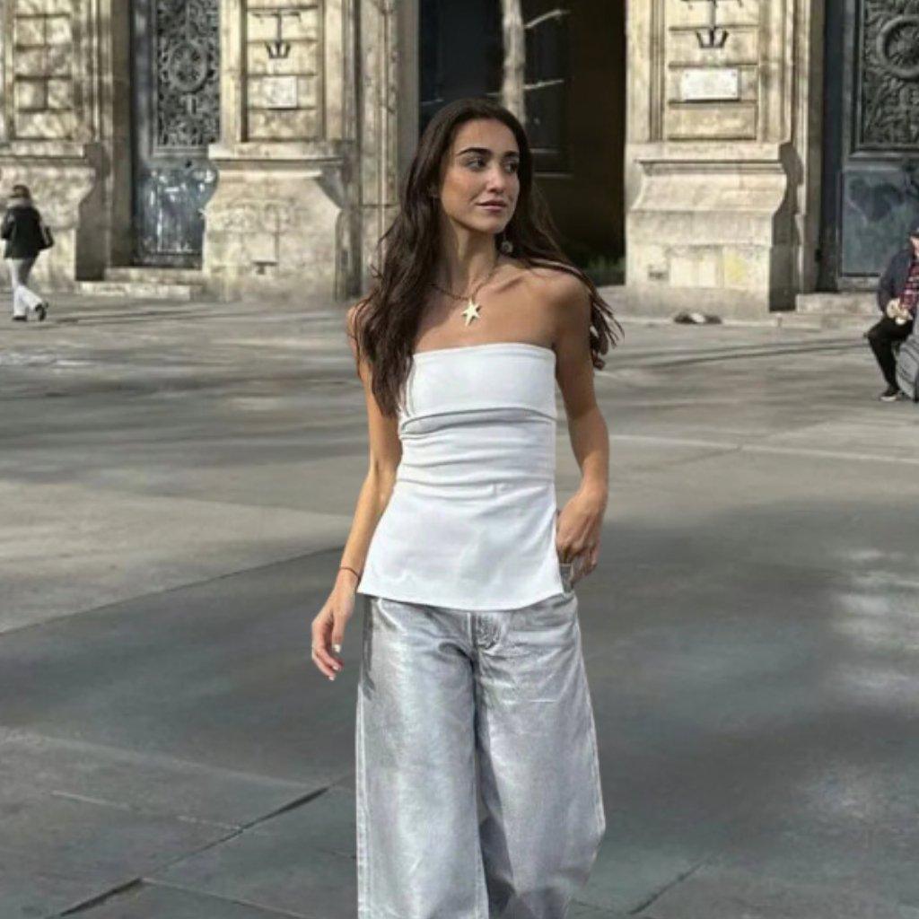 Aus Straplez Yırtmaçlı Bluz