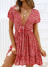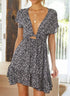 Çiçek Kesimli Fırfırlı Kuşaklı Mini Elbise