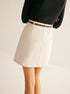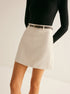 Essential Mini İnce Kemerli Etek, sade çizgileri ve zarif kemer detayıyla zamansız ve çok yönlü bir parçadır: