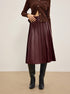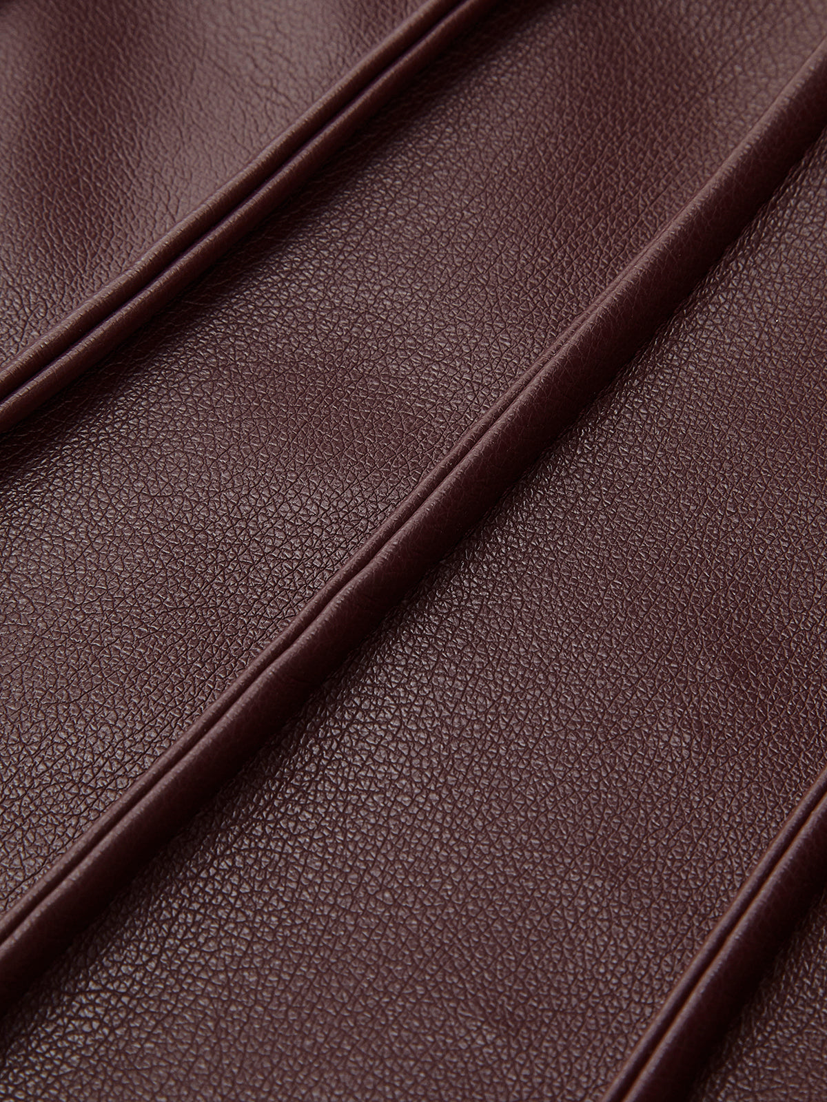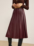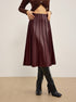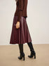 Luna Midi Deri Etek, klasik pileli tasarımı modern suni deri dokusuyla birleştirerek şık ve dinamik bir görünüm sunar:
