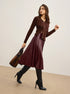 - Pile Detayları: Belden aşağı inen düzenli pileler, eteğe hareketli ve hacimli bir siluet kazandırır.
