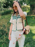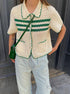Flag Polo Yaka Çizgili Delikli Kısa Kollu Üst