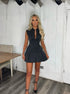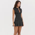 V Yaka Pileli Mini Elbise