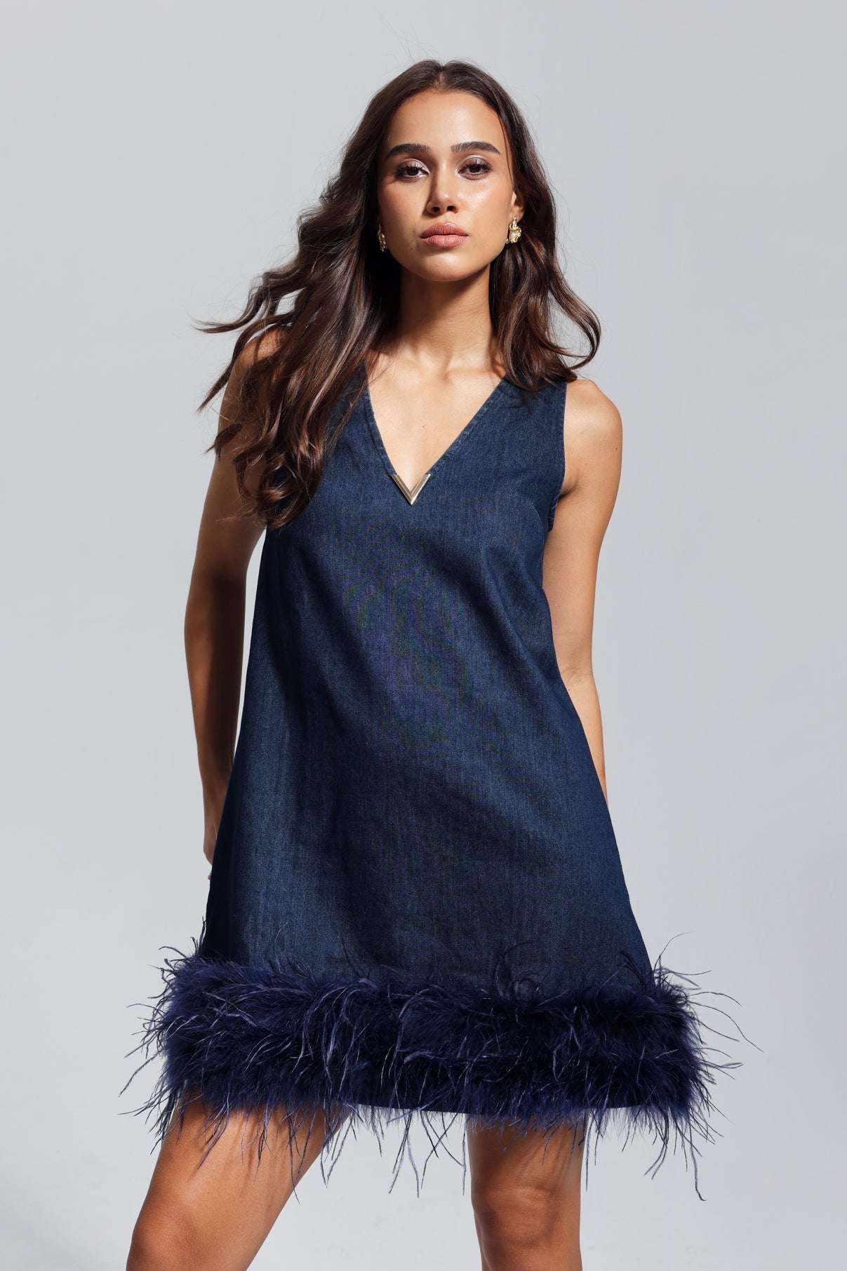 Kerrie Tüy Detaylı Kolsuz Denim Mini Elbise