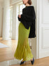 - Pile Detayları: Belden aşağı doğru inen düzenli pileler, eteğe hacim ve hareket kazandırır.