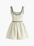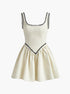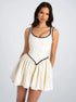 Kontrast Pliseli Mini Elbise