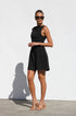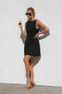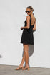 Siyah Kyrie Elbise ile cesur bir ifade yaratın. Bu özel dikim, kolsuz mini elbise, modern bir zarafet dokunuşu için sofistike bir kayık yaka ve çarpıcı, alçak sırt kısmına sahiptir. A kesim etek, hoş bir siluet sağlayarak doğal şeklinizi geliştirir.