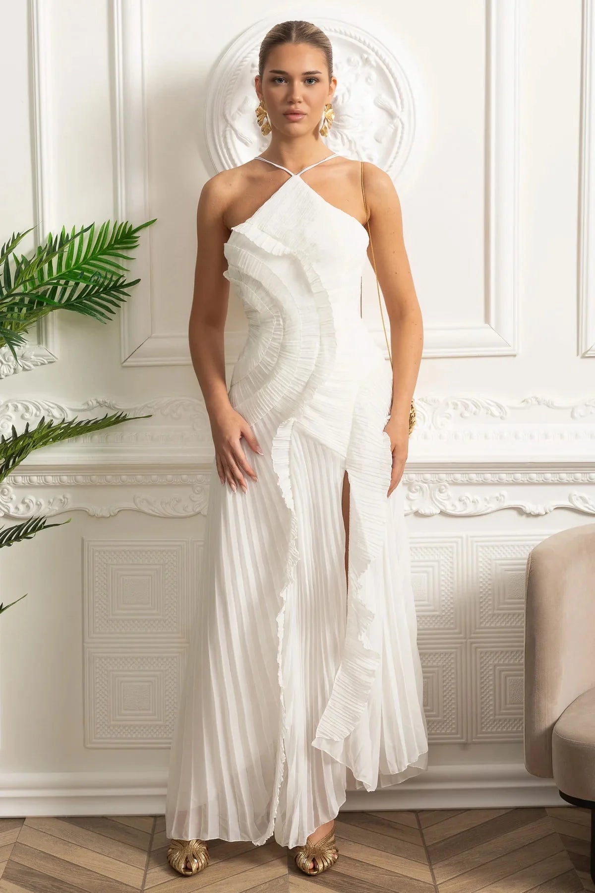 Liora Pileli Fırfır Detaylı Midi Elbise