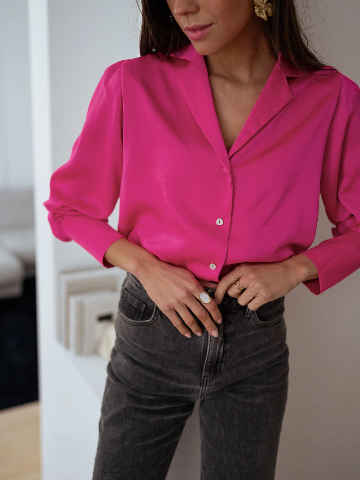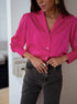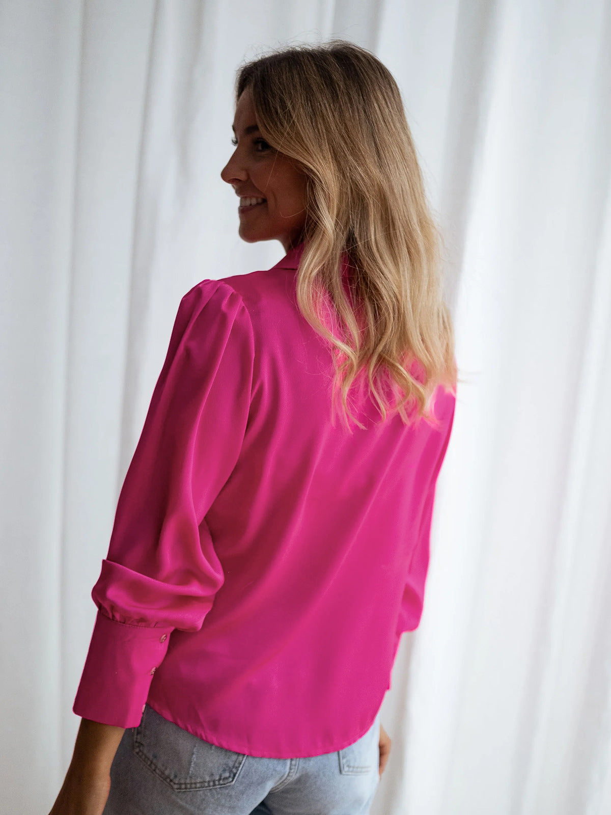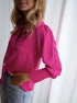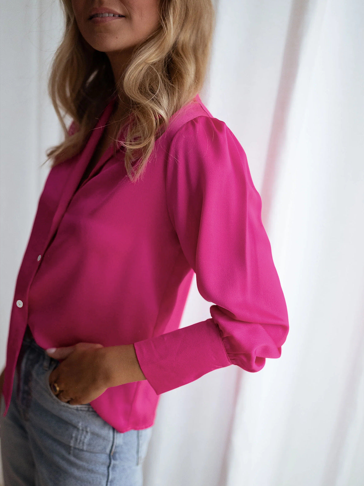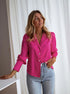 Pembe Kadın Bol Düğmeli Uzun Kollu Gömlek