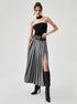 - Pile Detayları: Belden aşağı doğru inen düzenli ve ince pileler, eteğe hareketli ve zarif bir siluet kazandırır.