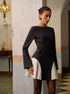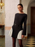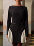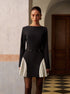 Renk Bloklu Yandan Pileli Kısa Elbise