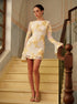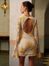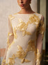 Romantik Çiçek Desenli Sırt Dekolteli Elbise