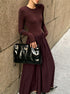 Sade Uzun Kollu Plise Elbise