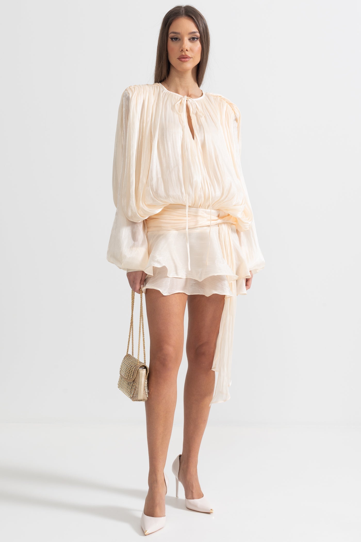 Siarra Bej Fırfırlı Mini Elbise