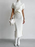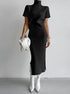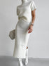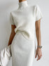 Triko Bluz ve Etek Takım, zarif ve modern detayları bir araya getiren, minimalist ve şık bir tasarıma sahiptir.