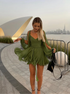 Uzun Kol Detaylı Volanlı Mini Elbise