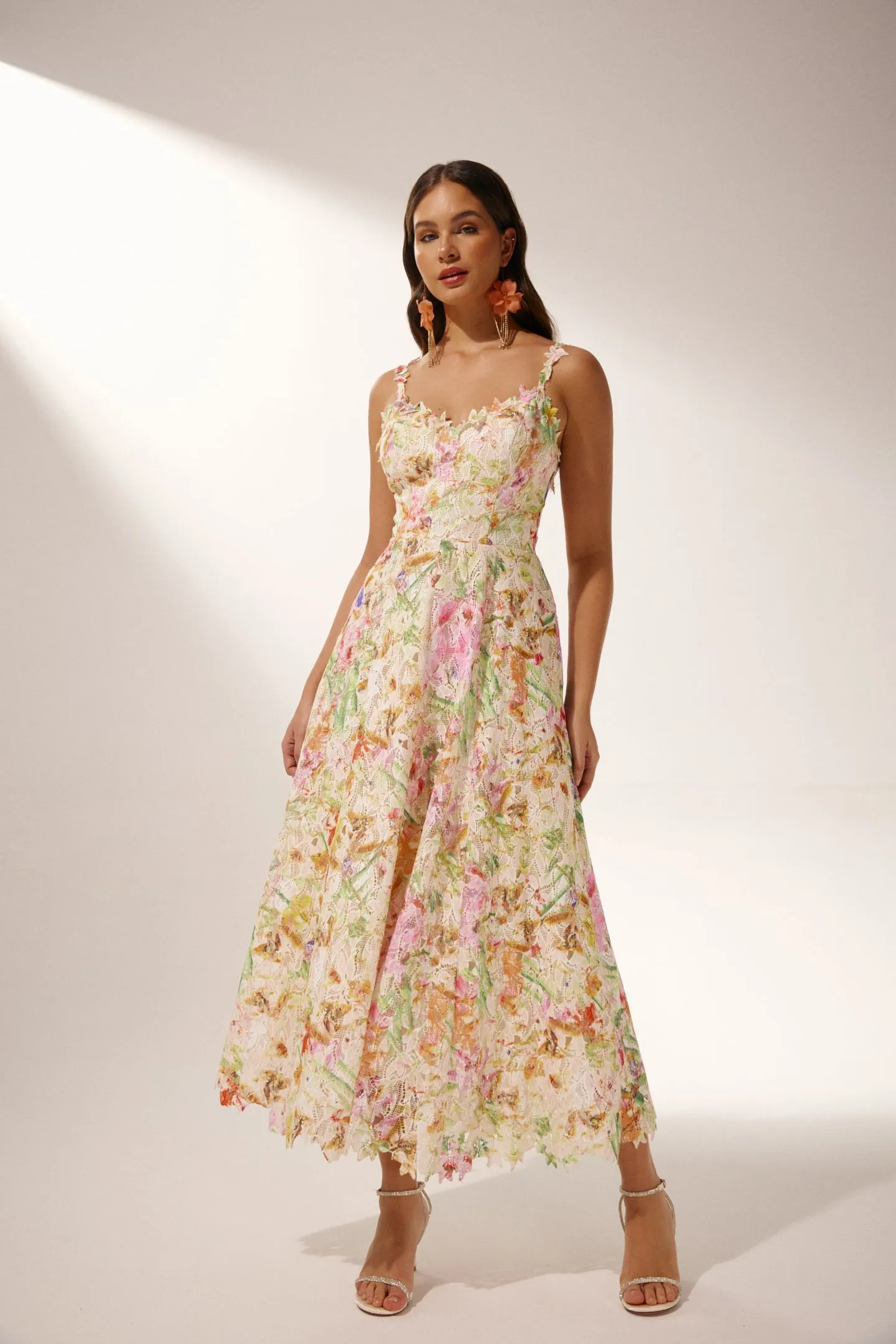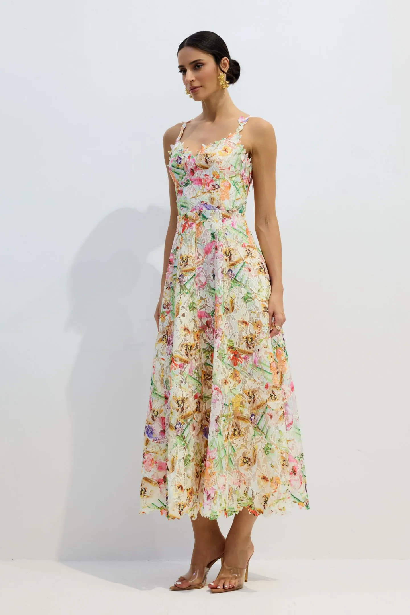 Viola Dantel İşlemeli Midi Elbise